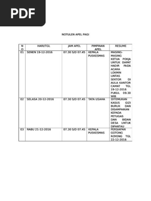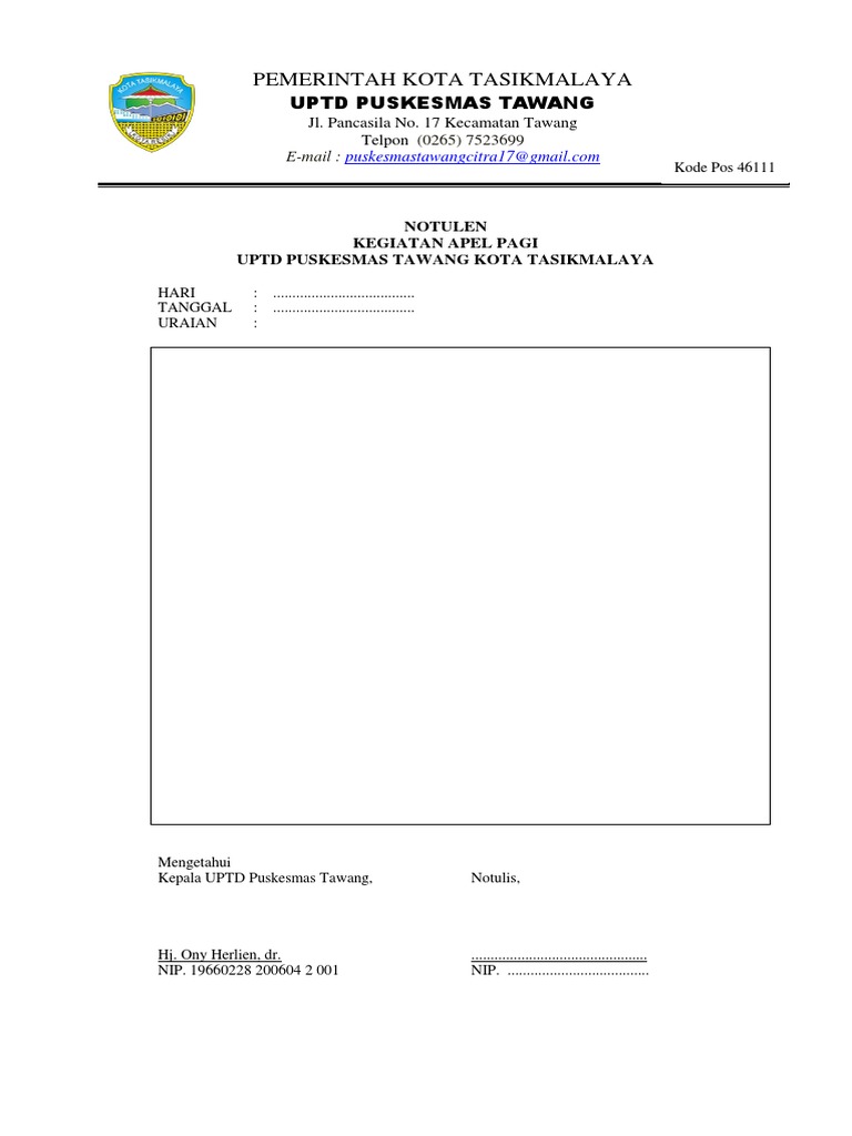 Related : Contoh Notulen Apel Pagi Puskesmas / Contoh notulen apel pagi puskesmas..