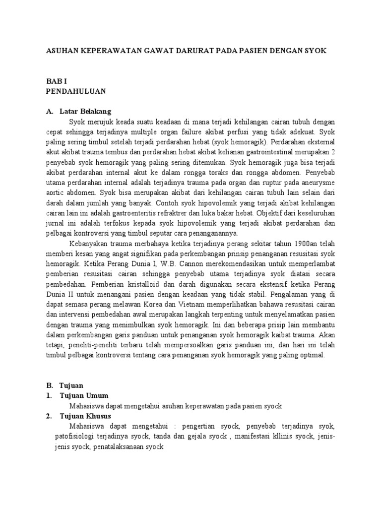 Gangguan kebutuhan nutrisi kurang dari kebutuhan berhubungnan dengan infekci plasmodium falcifarum yang ditandai dengan laporan pendahuluan depresi. Waktu kedatangan diisi sesuai jam berapa pasien datang ke instalasi gawat darurat, tempat anda bertugas dengan format : Keperawatan gawat darurat (emergency and critical care nursing). Setelah berhasil dikeluarkan dari mobil, tn. S dengan congestive heart failure (chf) di igd rs haji jakarta a.