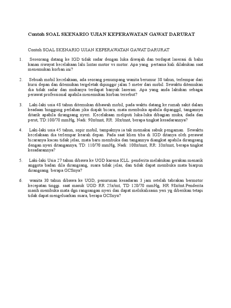 Di unit gawat darurat, dua pasien akibat kecelakaan datang secara bersamaan. Resume pengkajian pada ruang unit gawat darurat. Materi keperawatan gawat darurat : We are a sharing community. Landasan teori keperawatan kejang demam.